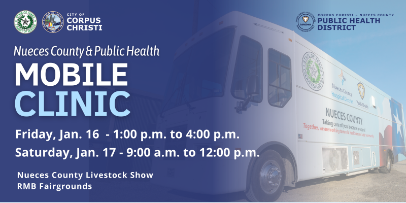 The Nueces County and Public Health Mobile Clinic will be at the Nueces County Junior Livestock Show at the Richard M. Borchard Regional Fairgrounds